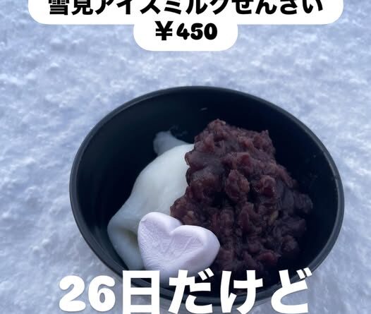 1/27は火曜日で定休日につき、明日26日(月)、1日早いニーナの日です‼︎ お召し上がり分全品10%off‼︎ そして、ニーナの日限定!雪見アイスミルクぜんざい¥450(限定10食) 大納言