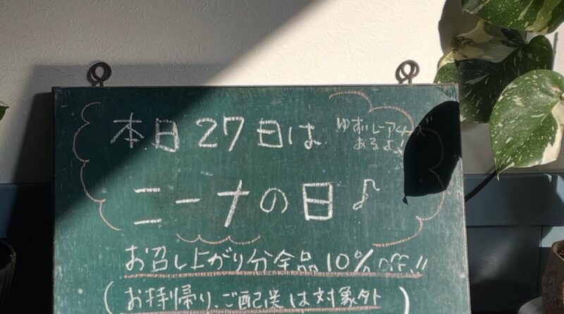 続きを読む本日27日はニーナの日♪店内お召し上がり分全品10%offです^ ^(お1人様お暇おひとつ限り、お持ち帰り,ご配送は対象外です) 今年最後ののニーナの日。ゆずレアチーズが出ています^ ^暖かいお日様が出ています